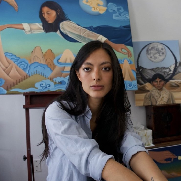 Khenzom is a Tibetan-American painter based in Brooklyn. She graduated from Yale with a degree in Environmental Studies and currently works at the Natural Resources Defense Council. In her paintings, she imbues Tibetan nomads with magical powers that reflect their knowledge and stewardship of the environment. By envisioning a homeland free from violence and environmental degradation, her art challenges extractive narratives of Tibet and imagines futures in which the deep harmony between Tibetan people and their land is fully restored. For her Climate Futures Studio project, she plans to create new playful and surreal paintings that envision futures in which Tibetans have regained environmental sovereignty.