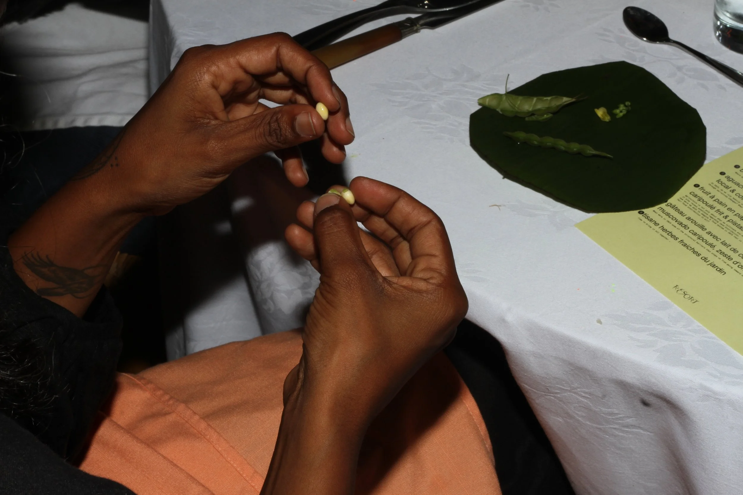 Aurelie Calou is an intuitive chef exploring and re-interpreting local Mauritian food heritage. She was an essential voice in designing the various meals for solarpunktable 2075: all recipes were developed and accomplished with fully local ingredients from the salt, to the oil, to the star ingredients - everything was sourced and produced on Mauritius Island.